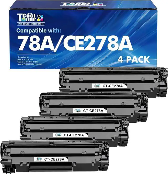 Include 4 Packs 78A | CE278A | toner cartridges in the box: 4 Black 78A | CE278A | Compatible for HP LaserJet P1606dn 1536dnf MFP Printer Toner
