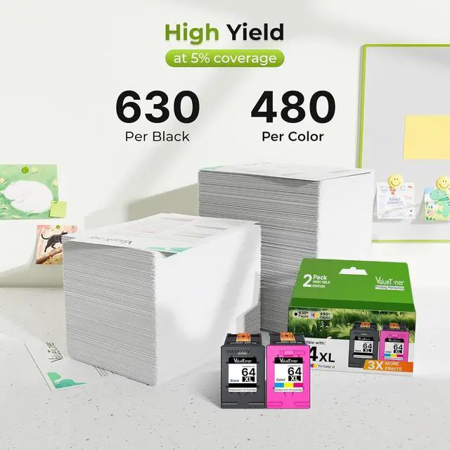 Quality Assurance: Valuetoner compatible for HP 64XL ink cartridge combo pack, undergoes a strict quality testing procedure to ensure quality and compatibility with your printer. Meanwhile, for hp ink 64 cartridge delivers sharp black-and-white prints and vivid color prints, meeting high-quality requirements for both text and image printing