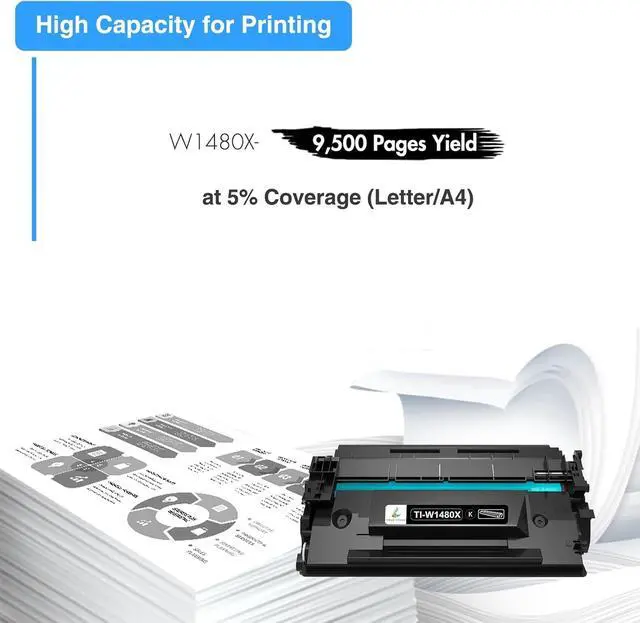 Page Yield: 9,500 pages at 5% coverage (Letter/A4) for 148X 148A black toner