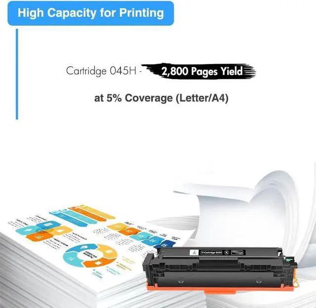 Page Yield: 2,800 pages at 5% coverage (Letter/A4) compatible for Canon 045H 045 MF634Cdw high yiled black toner cartridge