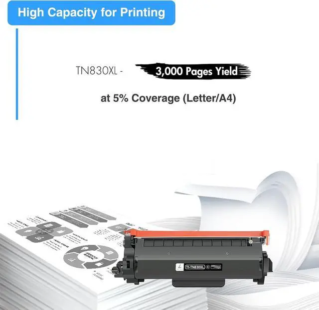 Page yield: Up to 3,000 Pages Per TN 830XL 830 TN830XL TN-830 High Yield Black Toner Cartridge (Letter/A4, at 5% Coverage) for HL-L2460DW DCP-L2640DW Toner