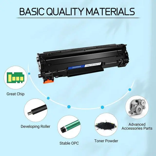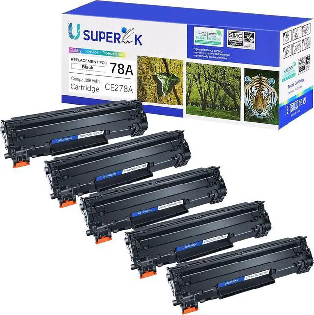 Item Name:USUPERINK Black Toner Cartridge Replacement Compatible for HP 78A CE278A High Yield Toner Cartridge.High Page Yield:Each black cartridge can print up to 2,100 pages for A4 papers at 5% coverage (Actual toner yield varies with usage, graphics printed and environmental conditions).High Quality Standard:USUPERINK toner cartridges have stable compatibility, good recognition, reliable performance, high purity toner prowder, print with crisp text.Wide Application:Widely use in home, office, school, bank, small business, large business and organisation and other fields. Experience consistent and high-quality printing with this compatible toner cartridge replacement. Designed for 100% compatibility and optimal performance, it offers a cost-effective solution for your printing needs.