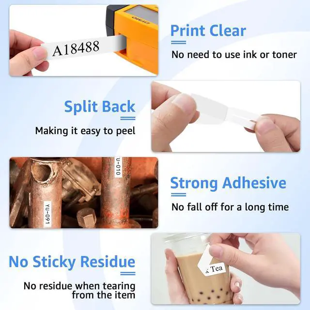The compatible for dymo rhino label's split-adhesive backing on the center cut line is easier to peel off.