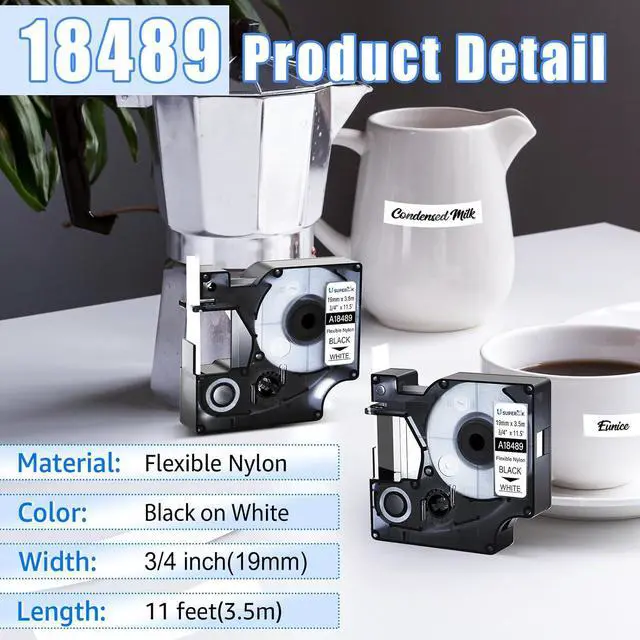 Color: 18489 Black Text on White Background, 18491 Black Text on Yellow Background; Length:3.5m(11.5 feet), Width: 19mm(3/4 inch)