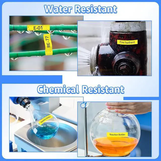 These Compatible for DYMO Permanent Polyester Series label tapes are water resistant, grime resistant, grease resistant, temperature resistant, abrasion resistant, chemical resistant as well as fading resistant.