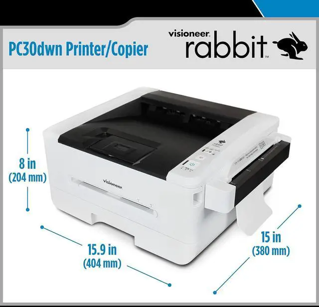WHAT IS INCLUDED: (1) Visioneer PC30dwn printer/copier, (1) toner cartidge and drum unit, (1) power supply and adapter, (1) USB cable, (1) Ethernet cable, (1) installation guide, and warranty and registration cards