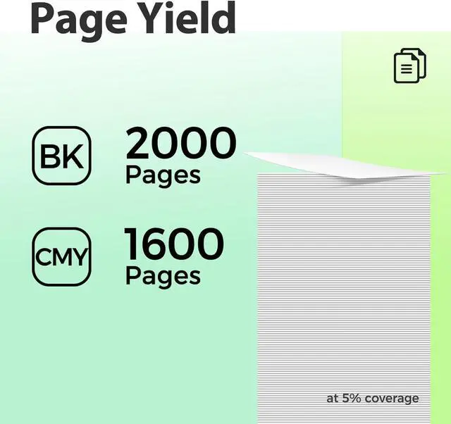• Pages per 962XL Ink Cartridge combo pack: 962XL black can print up to 2000 pages and 962XL color ink cartridges up to 1600 pages at 5% printing coverage