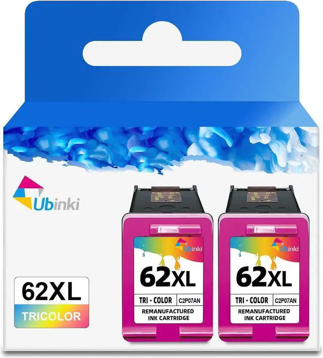 Ubinki 62XL Color Ink Cartridges Replacement Ink 62 XL HP62 HP62XL Higher Yield Ink Cartridge for Envy 5540 5640 5660 7640 7644 7645 OfficeJet 200 250 5740 5745 8040 Printer(2-Pack)