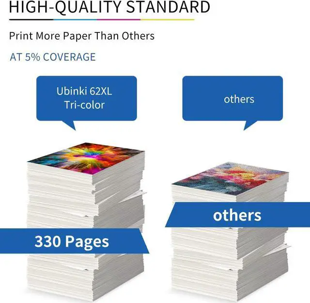 • Upgraded Chips: Ubinki 62 ink color xl cartridge equipped with the latest upgraded chips to ensure high compatibility, efficient recognition and stable printing.