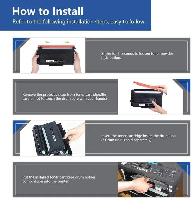 Easy installation for our user Gently shake the toner cartridge from side to side to distribute the toner.