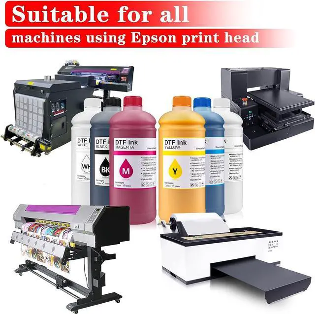 DTF Ink 1000ml Combo Pack Compatible for Epson printheads Installed DTF Printers L1800 R1390 ET-4800 8550 XP15000 I3200 4720 XP600 TX800 ET2800,(2*White+ 1set Black Cyan Magenta Yellow)