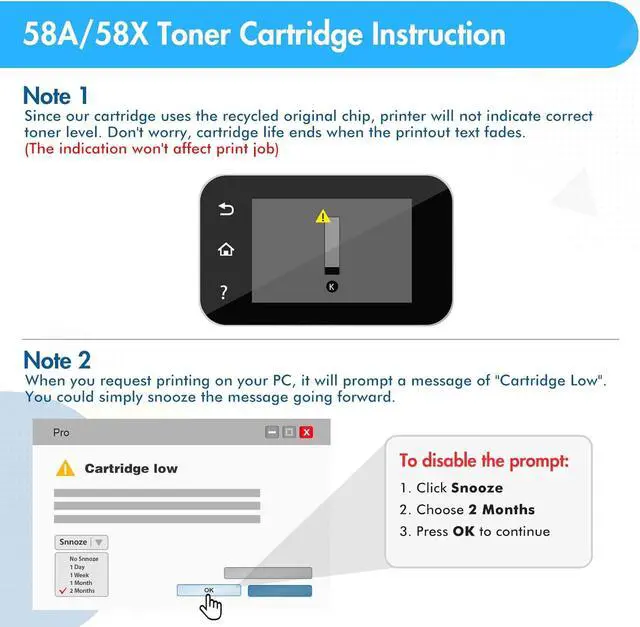 with Chip: This 58X toner cartridge is installed with chip, No need to transfer OEM 58X or 58A toner chip to it
