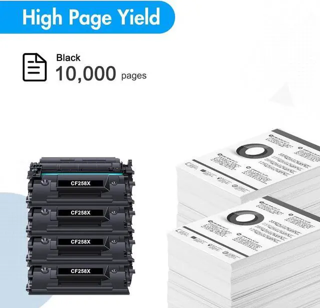 High Page Yield: Up to 10,000 pages per 58X black toner (Letter/A4, at 5% Coverage)