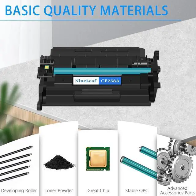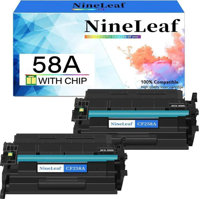 Item nameNineLeaf Compatible Toner Cartridge Replacement for HP 58A CF258A[WITH CHIP] Toner CartridgePage yieldUp to 3,000 pages yield per toner cartridge (at 5% coverage Letter A4)ColorBlackCompatible for HP printersLaserjet Pro M404 Series: M404dw M404dn M404n M404, Pro MFP M428 Series: M428fdn M428fdw M428dw M428 M304, Enterprise M406 Series: M406dn, Laserjet Enterprise M430f Series: M430f Printer CF258A Toner cartridge