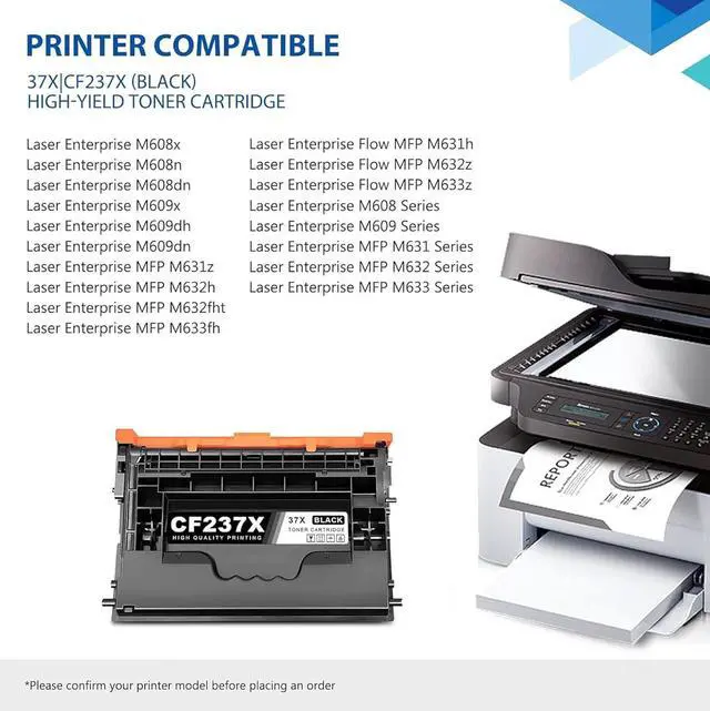 Pack: Replacement for HP 37X Toner Cartridge 37A 37Y Works with Laser Enterprise M607, M608, M609 Series; MFP M631, M632, M633 Series Printer | CF237XRecommendations37X High-Yield Black Toner Cartridge, Cf237X 1 Pack (New Chip) Replacement for HP 37X Toner Cartridge 37A 37Y Works with Laser Enterprise M607, M608, M609 Series; MFP M631, M632, M633 Series Printer 37A CF237A Toner Cartridge Replacement for HP 37A Black Toner Cartridge 37X CF237X 37Y Works with Laser Enterprise M607 M608 M609 Series, Laser Enterprise MFP M631 M632 M633 Series Printer (1-Pack) CF237X 37X Black Toner Cartridge 2-Pack, Replacement for 37X Toner Cartridge 37A CF237A 37Y Works with Laser Enterprise M607, M608, M609 Series; MFP M631, M632, M633 Series Printer Toner (with Chip) 37A