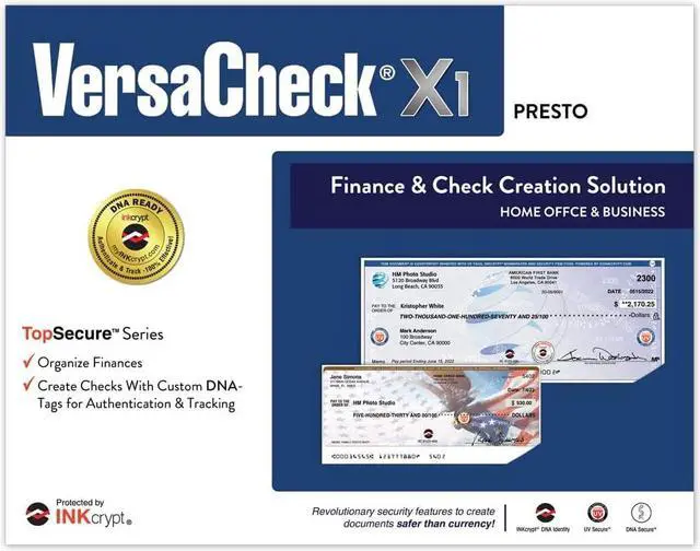 VersaCheck Presto software download (Windows 11,10,8.1 Compatible) & blank check paper included - everything needed for bank compliant check printing