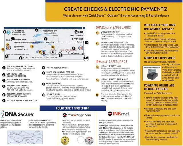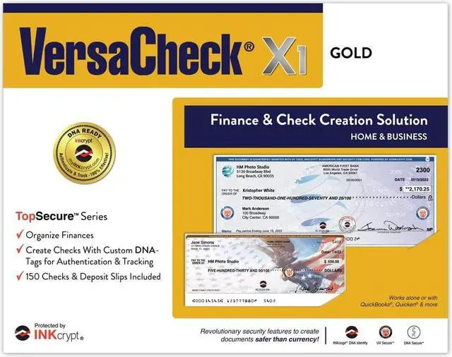 VersaCheck X1 Gold software download (Windows 11,10,8.1 Compatible) & blank check paper included - everything needed for bank compliant check printing
