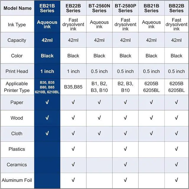 Ink Compatibility: Bentsai original EB21B black ink cartridge is built with self-developed encrypted chip and can only be used on Bentsai B30, B35, B80, B85 handheld inkjet printer.