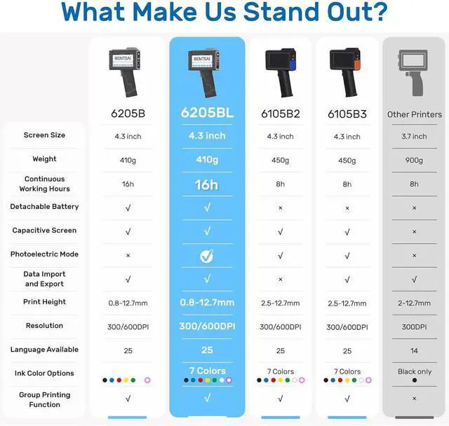 Seamless Assembly Line Integration: The BT-HH6205BL handheld inkjet printer gun is designed for efficient assembly line use, featuring sensitive photoelectric sensors and a photoelectric printing mode that automatically prints when items pass by, significantly boosting printing and coding efficiency.