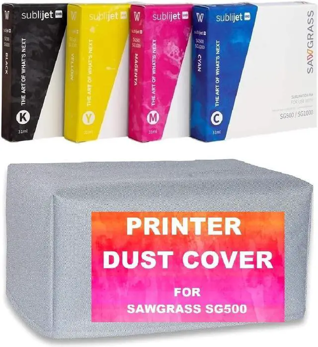 Bundle Deal: these Sawgrass SG500 inks come with a sturdy PRINTER DUST COVER (Sublimax brand) specially designed for your Sawgrass Virtuoso SG500 Printer. DURABLE, LONG LASTING FABRIC. EASY TO USE, STORE & CLEAN: Can easily be folded and stored when not in use, and cleaning is as easy as a wipe down with a damp cloth