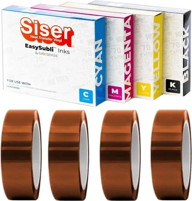 4 Rolls of Swing's ProSub Heat Resistant Transfer Tape 1in x 108ft Each. Swing's ProSub high temperature heat resistant tape for sublimation is made from polyimide film and is specifically designed for use with all types of heat presses. Perfect for wrapping 20oz tumblers, helping to hold designs in place while pressing, or any other project where heat is being applied.