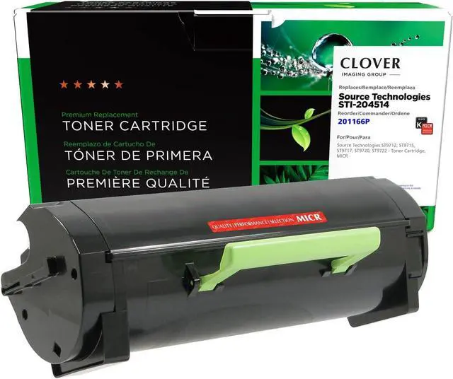 Clover remanufactured MICR cartridges utilize specially formulated toner that meets ANSI/ABA standards to ensure proper MICR signal strength is met