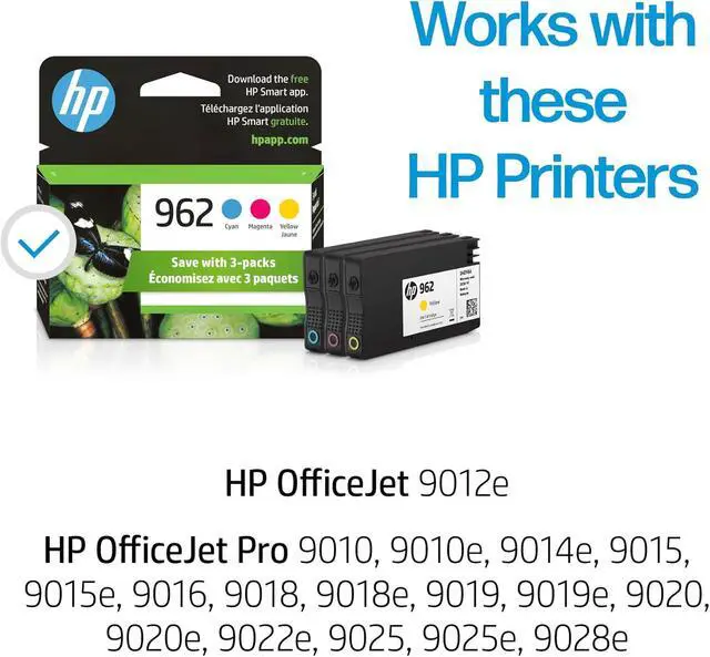 HP 962 Cyan, Magenta, Yellow Ink Cartridges | Works with OfficeJet 9010, 9020 | Eligible for Instant Ink | 3YP00AN