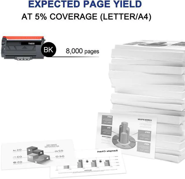 Page Yield: 8,000 Pages per TN850 High Yield Toner Cartridge (Letter/A4, at 5% Coverage)