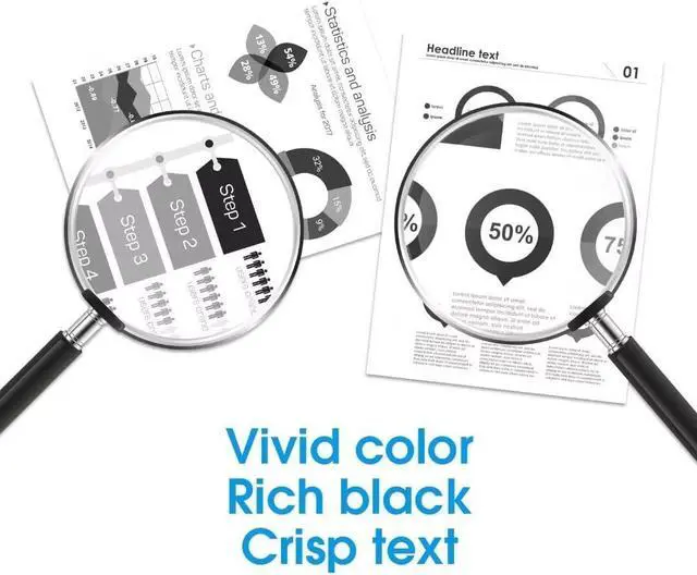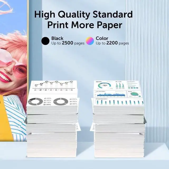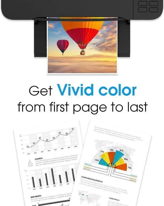 Page Yield: Up to Black is 2,500 pages per black cartridge and Color is 2,200 Pages per color cartridge (Letter/A4, at 5% Coverage).
