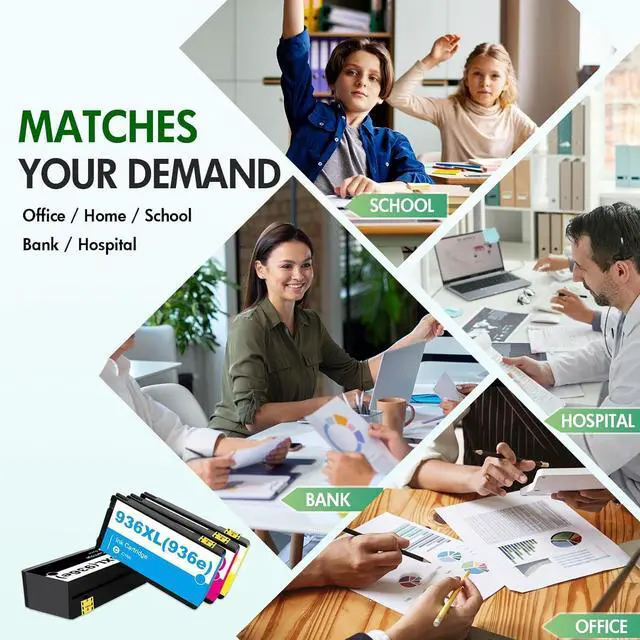 Package Content: Ink 936XL black and 936XL color combo pack (1 × 936XL Black, 1 × 936XL Cyan, 1 × 936XL Magenta, 1 × 936XL Yellow Ink Cartridge