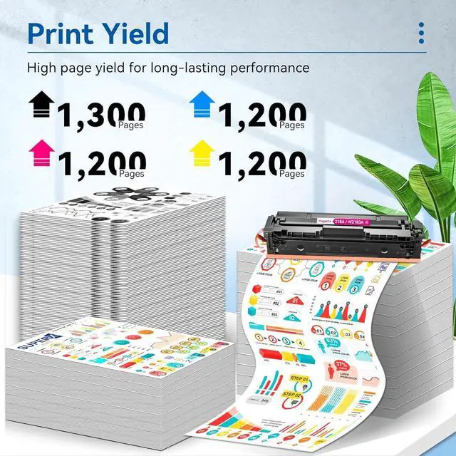 High Page Yield: Up to 1,300 pages for the 218A black toner cartridge and 1,200 pages for each 218A color toner cartridge (Letter/A4, at 5% coverage)
