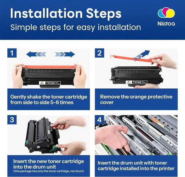 Package Contents: Nildoa 2 Pack TN-760 Toner Cartridge Replacement for Brother TN760 TN-760 Toner Cartridge High Yield Black