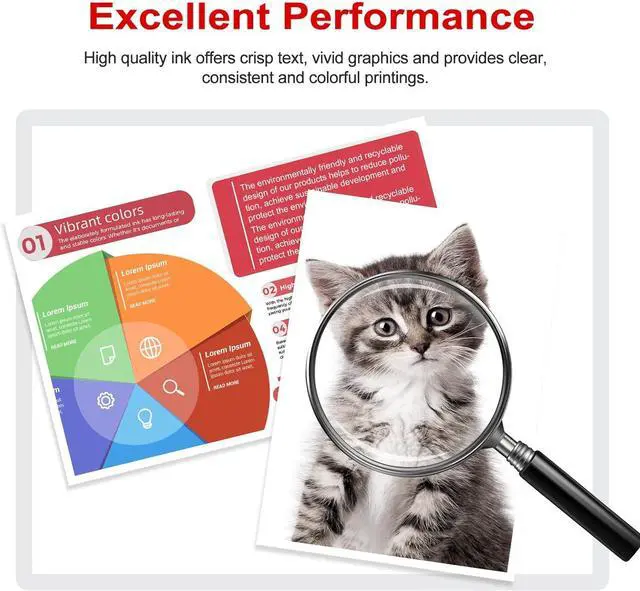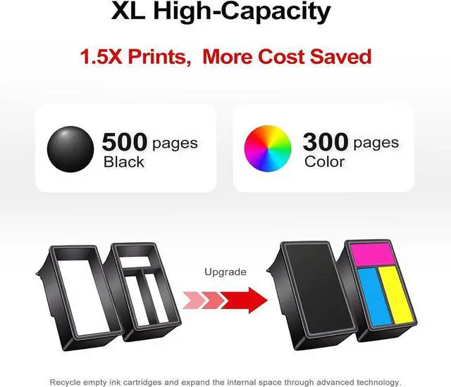 High Page Yield: 500 pages per black ink cartridge, 350 pages per color ink cartridge | Inkject 1.5 times more ink than the original cartridge