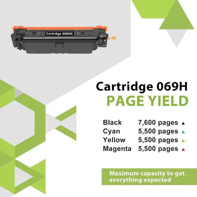 High Page Yield: 7,600 pages (black toner) and 5,500 pages (color toner) at 5% coverage (Letter A4) compatible for 069H toner cartridge set