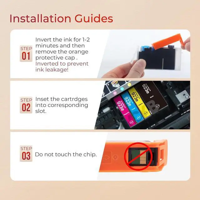 [With Chips]Ejet 923xl ink cartridges for hp 923 ink cartridges comes with the latest chip, which is highly compatible with your printers. 923 ink cartridges for hp printers provides reliable, professional-quality prints. You no longer need to exchange the hp923 ink cartridges chip yourself,we can reduce your usage burden and improve your usage efficiency.