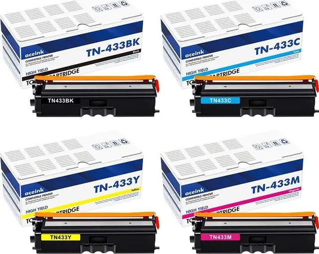 aceink Toner Compatible for TN433BK TN433C TN433M TN433Y TN431 High Yield Toner Cartridge Set