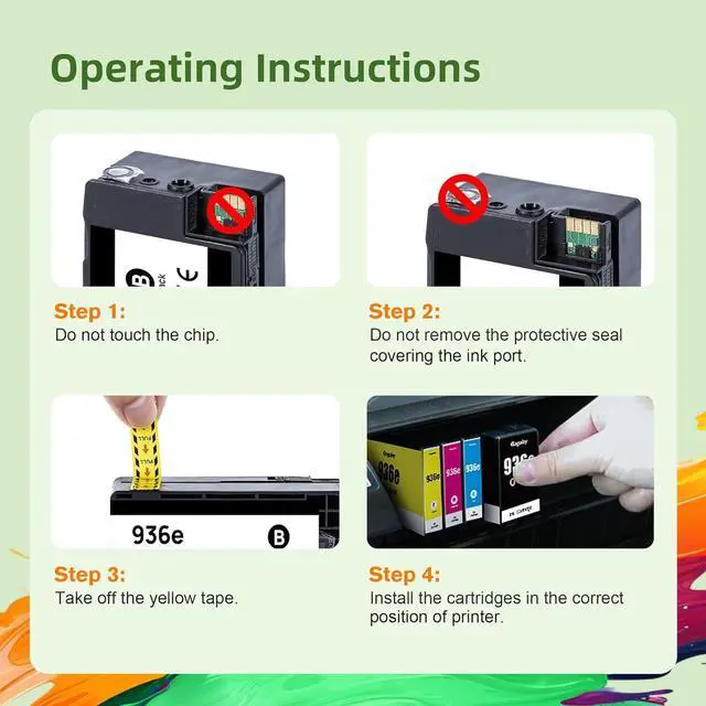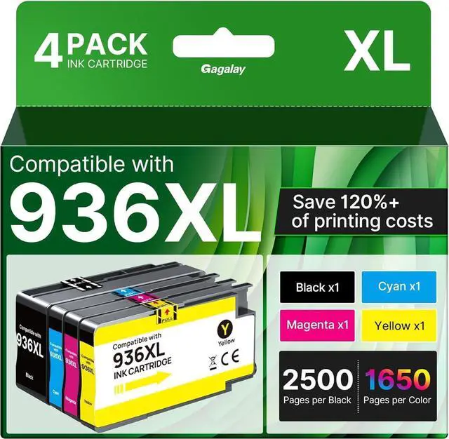 What is included: 4 Pack 936 Ink Cartridges for Hp Printers, 1 x 936xl 936e 936 Ink Cartridges Black, 1 x 936xl 936e 936 Ink Cartridges Cyan, 1 x 936xl 936e 936 Ink Cartridges Magenta, 1 x 936xl 936e 936 Ink Cartridges Yellow