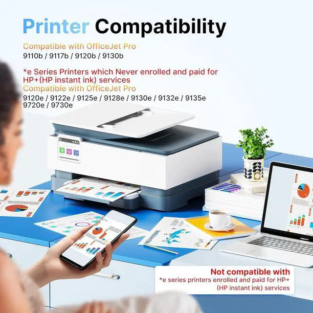 Note: LxTek 936xl 936e 936 ink cartridges combo pack compatible with hp *e series printers which Never enrolled and paid for HP+ (HP instant ink) services, such as OfficeJet Pro 9120e 9125e 9122e 9128e 9110b 9120b 9130b 9130e 9135e 9730e Series Printer.