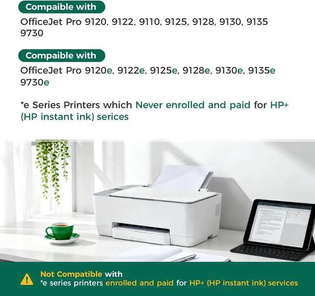 Printer Compatibility: 936 936XL ink cartridges for HP OfficeJet Pro 9120e, 9122e, 9125e, 9128e, 9130e, 9135e, 9730e Printers (*e Series Printers which Never enrolled and paid for HP+ (HP instant ink) serices)