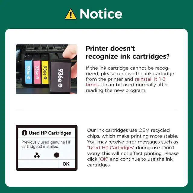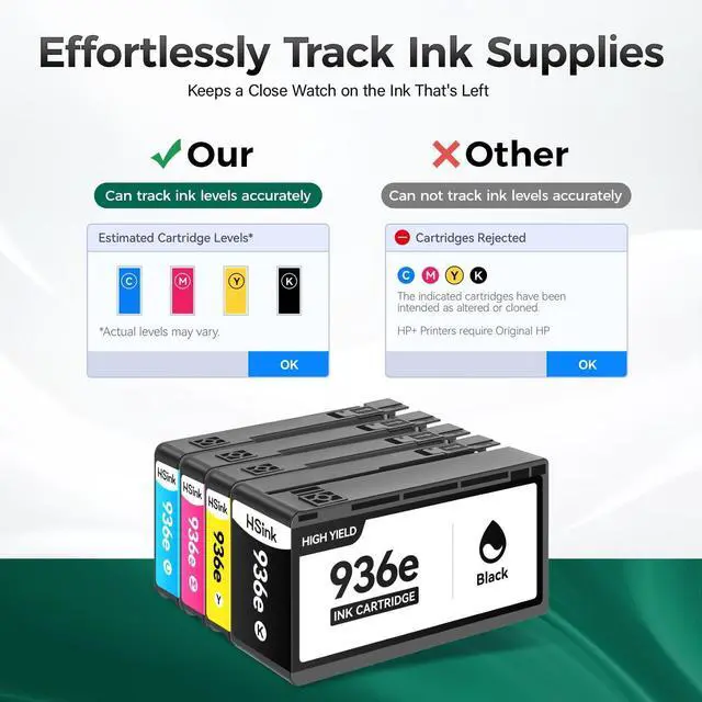 Upgraded Smart Chips Inside: 936 936XL ink cartridges combo pack ensures strong compatibility, fast recognition, and real-time ink level indication, providing smooth and high-efficiency printing.
