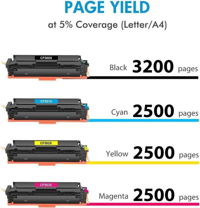 Page Yield: 3,200 Pages (202X Black) and 2,500 Pages (202X Color) Based on 5% coverage (Letter/A4)