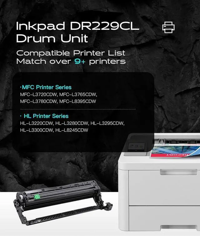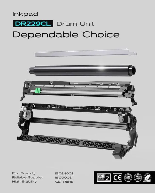 Premium Quality Our iNKPAD DR229CL drum units replacement is meticulously produced following strict ISO 9001 and ISO 14001 STMC standards. Each batch undergoes a comprehensive 7-step quality assurance process, ensuring consistent excellence in printing quality, endurance, and reliability.