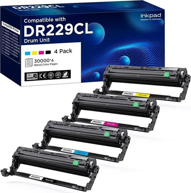 Package Contents 4 Pack of DR229CL Drum Unit (TN229XL toner NOT included,ONLY drum), 1 × User Guide.