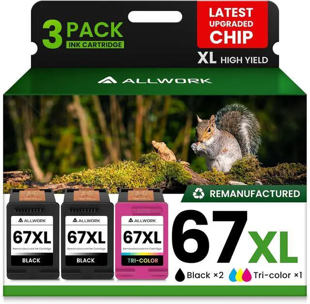Package Includes: 2 Black and 1 Color remanufactured 67XL Ink Cartridges Black/Color combo Pack