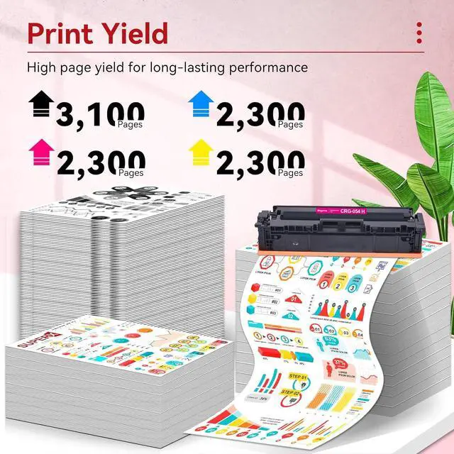 Page Yield: Up to 3,100 pages per 054H Black toner cartridge replacement for Canon 054 054H toner, and 2,300 pages per 054H Color toner replacement for Canon 054 054H printer toner (at 5% coverage)