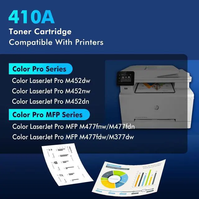 410A CF410A toner cartridges work with: Color Pro MFP M477fdn, MFP M477fdw, MFP M477fnw, M452dn, M452dw, M452nw, MFP M377dw Printer