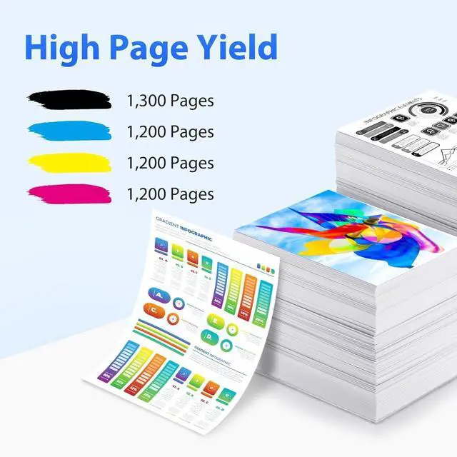 High Page Yield: The 218A black toner cartridge delivers up to 1,300 pages, and each color 218A toner cartridge prints up to 1,200 pages (based on letter/A4 size at 5% coverage). An economical choice for both home and office use