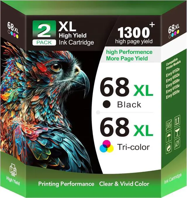 68 ink cartridges work with:Designed for Envy 6155e, 6555e, 6152e, 6558e, and 6552e printers, offering smooth compatibility and dependable results. These eco-friendly re-manufactured cartridges are fully compatible with all of the models listed above.