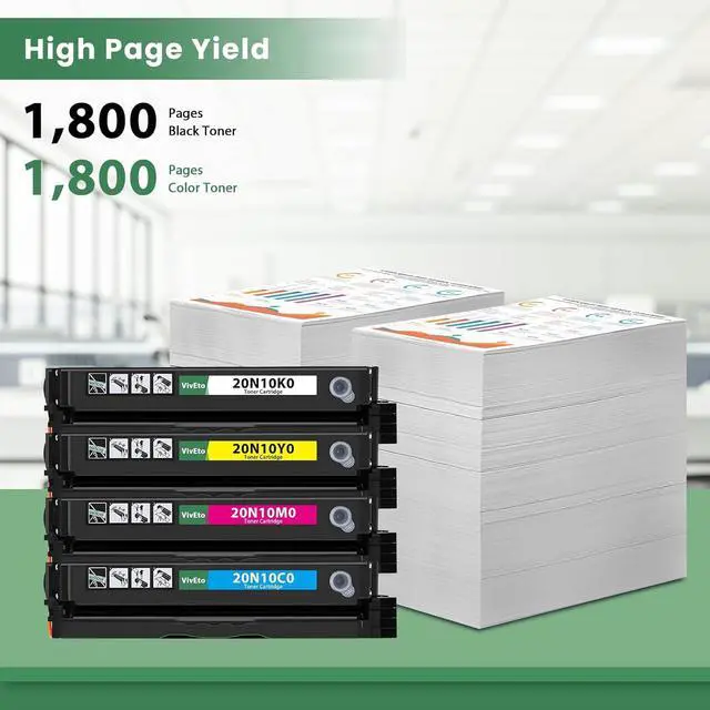 High Page Yield: Up to 1,800 pages per 20N10 Black toner cartridge, Up to 1,800 pages per color 20N10 toner cartridge at 5% coverage of A4 paper