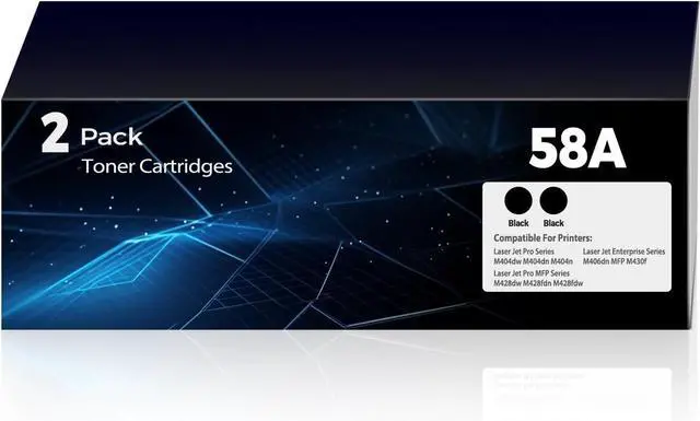 Package Contents: 2 Pack 58A CF258A Toner Cartridges Replacement for 58A Black Toner Cartridge